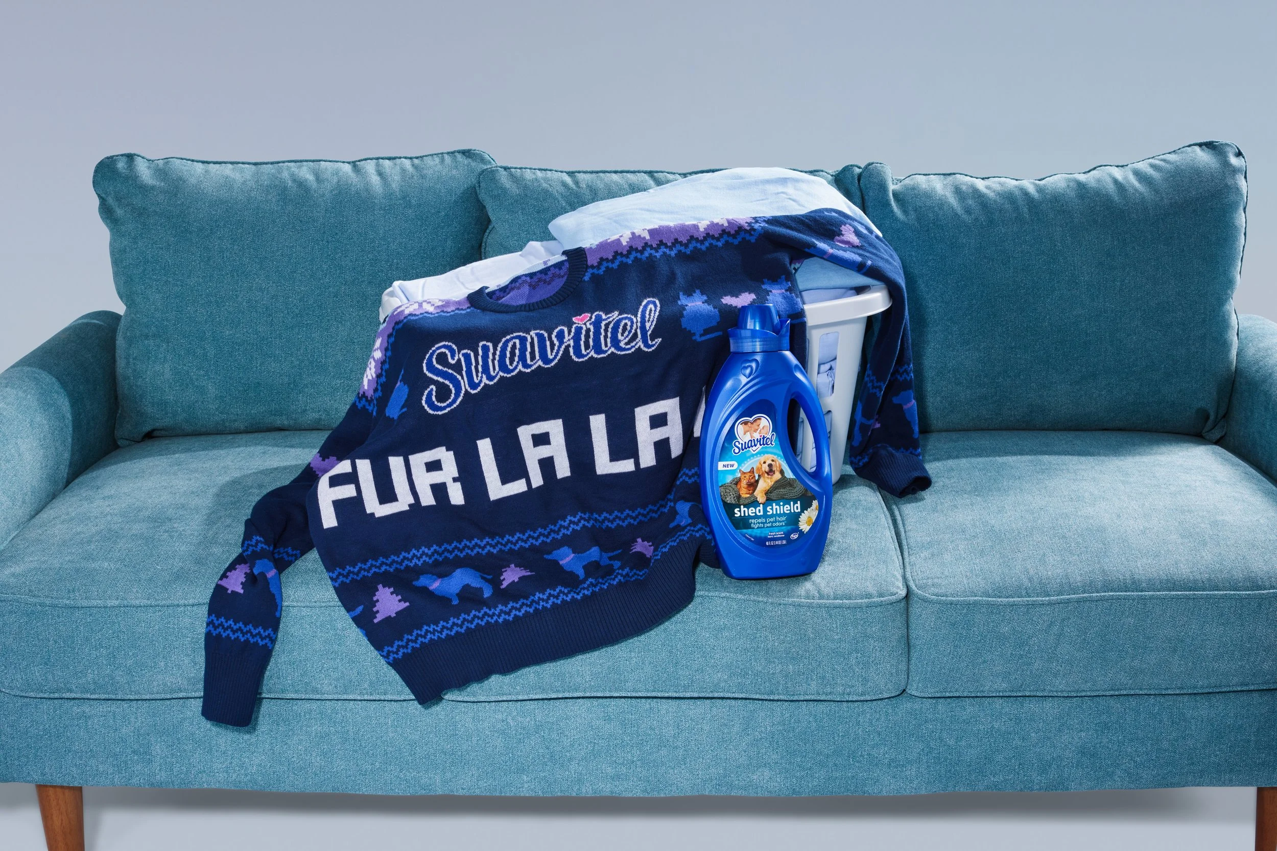 Pet owners love cuddling their pets but worry about pet hair on their clothes. Suavitel Shed Shield detergent prevents that. 60% of millennial pet parents say they’d rather snuggle their pet than their partner, but pet hair is a barrier that’s keeping them apart. Introducing The Suavitel® Cuddle Crewneck, the cozy fashion statement designed to help pet parents and fur babies get closer than ever. Pre-treated with Suavitel Shed Shield, The Cuddle Crewneck repels pet hair so people can spend more time loving on their pets and less time fighting fur mess.